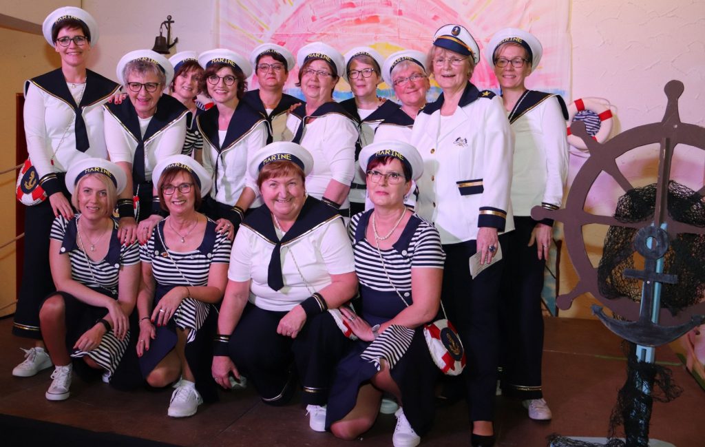 Mit einer rund 200 bunt kostümierten und bestens gelaunten weiblichen Gästeschar sowie von zahllosen „Flammersfeld Radau“-Rufen begleitet, stach am Samstagnachmittag im Bürgerhaus der große närrische Meeresdampfer „Maximiliane“ auf Kreuzfahrt in See. Traumschiffkapitänin und Obermöhne der „Radau-Möhnen“, Christa Bartels, begleitet von zahlreichen Aktivmöhnen und flotten Seemännern, letztere sorgten für das leibliche Wohl der illustren Narrenschar, eröffnete die Reise durchs „Mittelmeer“ mit dem läuten der Schiffsglocke. Musikalischer Begleiter der Reise war abermals Patrick Zillich. Ehe die Möhnen ihr buntes, abwechslungsreiches und mehrstündiges Unterhaltungsprogramm präsentierten, wurden die Besucherinnen an Bord an einem großen und einladenden Kuchenbuffet verwöhnt. Nach dem Udo Jürgens Hit „Aber bitte mit Sahne“, auf „Willkommen an Bord“ umgetextet, stellten die Möhnen ihrer Gästeschar zunächst diverse Traumschiffaktivitäten vor. Im Anschluss plauderte das Zuckerpüppchen über den Volksport Nummer 1 beim Strandurlaub, dem „Liegen reservieren“, vom Schaukeltest unter Alkoholeinfluss oder über den FKK Bereich in dem der eine oder andere ältere Herr nicht die beste Figur abgab. Weiter standen Ehe- und Frauenbeziehungen, das Leben in und mit den Wechseljahren, Erlebnisse eines Sitzungspräsidenten oder eine unterhaltsame Therapiesitzung unter Berücksichtigung der Wochentage auf dem Programm. Lustig zu ging auch während Zwischengesprächen oder den Solovorträgen „Rosemaries Erlebnisse einer Kreuzfahrt“ und bei „Familienproblemen“ zwischen Oma, Mann und Sohn. Begeistert empfangen wurden abermals die „singenden Kellner“ sowie einige tolle Tanzgruppen. Beim großen Finale präsentierten die Radau-Möhnen zunächst legendäre Hits der Gruppe ABBA sowie eine musikalische Reise durch die Stadt Köln. Ein Dank galt auch den fleißigen Saaldienerinnen Lisa Holzapfel und Jana Leis.