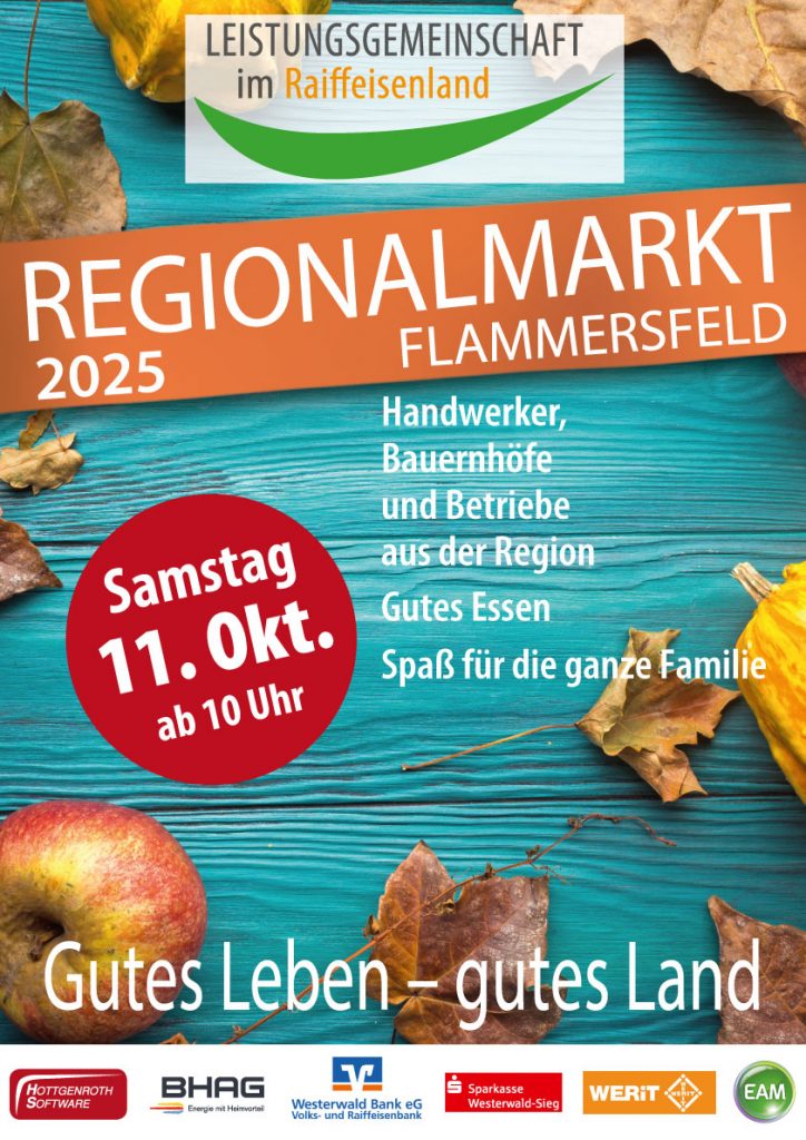 Am 11. Oktober öffnet der beliebte Regionalmarkt rund um das Bürgerhaus in Flammersfeld wieder seine Tore. Die Veranstaltung hat sich längst als fester Termin im Jahreskalender etabliert und erfreut sich wachsender Beliebtheit – bei Ausstellern wie Besuchern gleichermaßen. Der Veranstalter,...